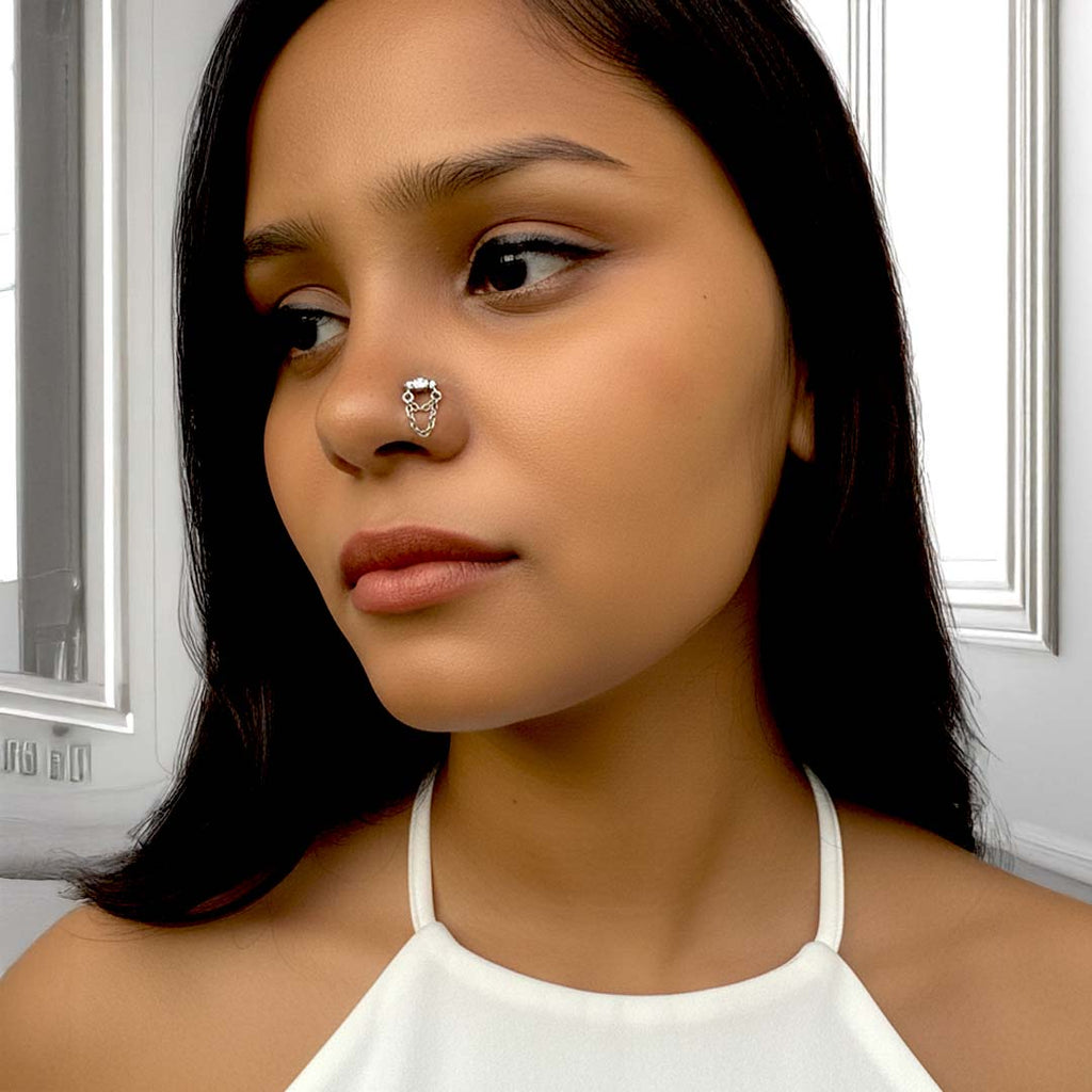 Why go basic when you can glow bold? Our Willow Silver Nose Pin is all sass in a tiny sparkle - handcrafted in 92.5 sterling silver with a flawless 5A CZ, it’s your everyday dose of edge and elegance. Light, dainty, and effortlessly chic, this little stunner adds just the right...